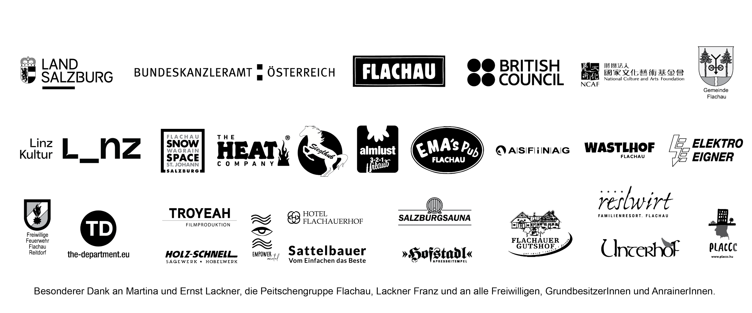 Bundeskanzleramt Österreich, Land Salzburg, British Council, NCAF (National Culture and Arts Foundation), Linz Kultur, Gemeinde Flachau, Tourismus Flachau, Snow Space (Flachau, Wagrain, St. Johann), THE HEAT COMPANY, Sieglhub, Almlust, Ema’s Pub, ASFiNAG, Wastlhof, Elektro Eigner, reslwirt FAMILIENRESORT, EMPOWER, Freiwillige Feuerwehr Flachau/Reitdorf, The Department (TD), TROYEAH Filmproduktion, Holz Schnell, Hotel Flachauerhof, Sattelbauer, Salzburgsauna, Flachauer Gutshof, Hofstadl, Unterhof, Placce, raumarbeiterinnen